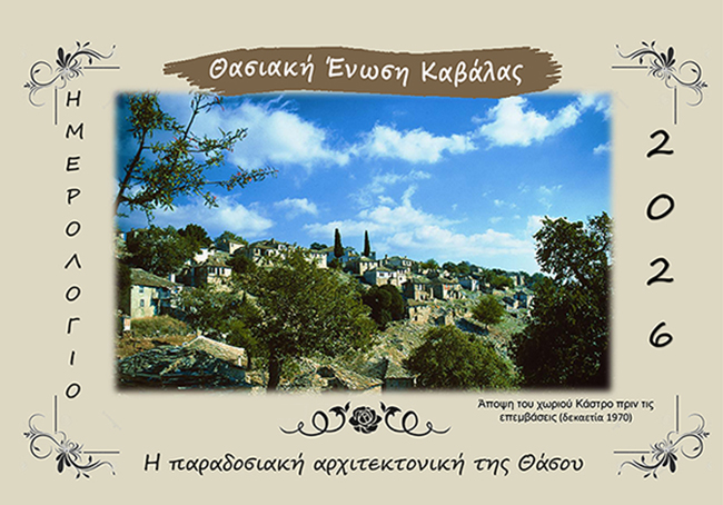 Αγαπητοί Συμπατριώτες, Φίλες και Φίλοι της Θασιακής Ένωσης Καβάλας,Το 2025 ο ιστορικός Σύλλογός μας, συνεχίζοντας την πολιτιστική και κοινωνική του πορεία, πραγματοποίησε πολλές και πετυχημένες εκδηλώσεις – δραστηριότητες. Η επιτυχία των εκδηλώσεών μας οφείλεται, εκτός από την καλή προετοιμασία τους εκ μέρους του Διοικητικού Συμβουλίου, και στη δική σας συμπαράσταση – συμμετοχή. Γι’ αυτή σας τη συμπαράσταση αισθανόμαστε την ανάγκη, εμείς του Διοικητικού Συμβουλίου, να σας ευχαριστήσουμε θερμά. Το 2026 θα προσπαθήσουμε να είναι και πάλι δημιουργικό για τον Σύλλογό μας. Εκδηλώσεις – Δραστηριότητες μέχρι τέλους του έτους και Α΄ Εξαμήνου 2026 - Συμμετοχή στις εορταστικές εκδηλώσεις του Δήμου Καβάλας «ΑΣΤΕΡΟΥΠΟΛΗ 2025» με την παρουσίαση εθίμων του Δωδεκαήμερου και παραδοσιακών χορών της Θάσου (Κυριακή, 28 Δεκεμβρίου 2025, ώρα 12.00, Πλατεία Καπνεργάτη).