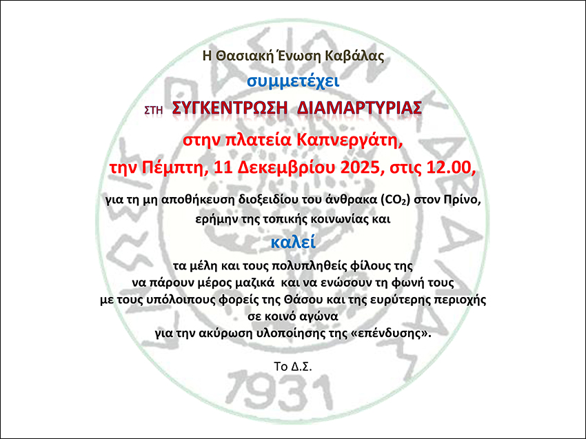 • Συμμετοχή στο συλλαλητήριο ενάντια στην αποθήκευση CO2 στον Πρίνο